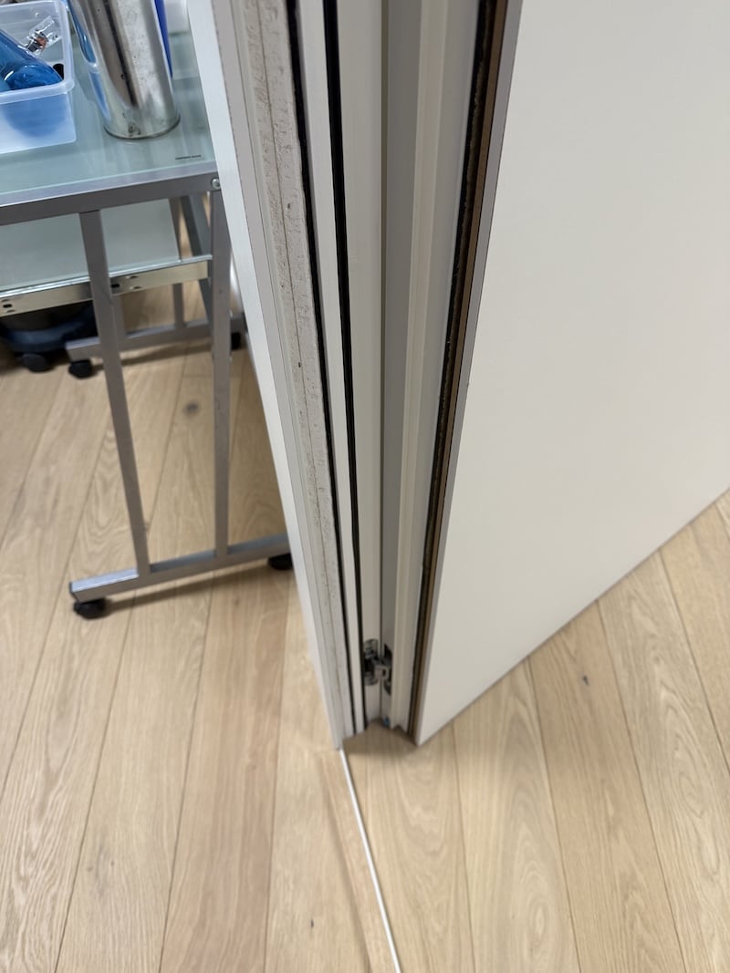 La demande de notre cliente était très claire : trouver une solution efficace pour améliorer l’isolement acoustique entre les deux cabinets, sans remplacer la porte et en conservant une intégration discrète, tant sur le plan esthétique que fonctionnel.
