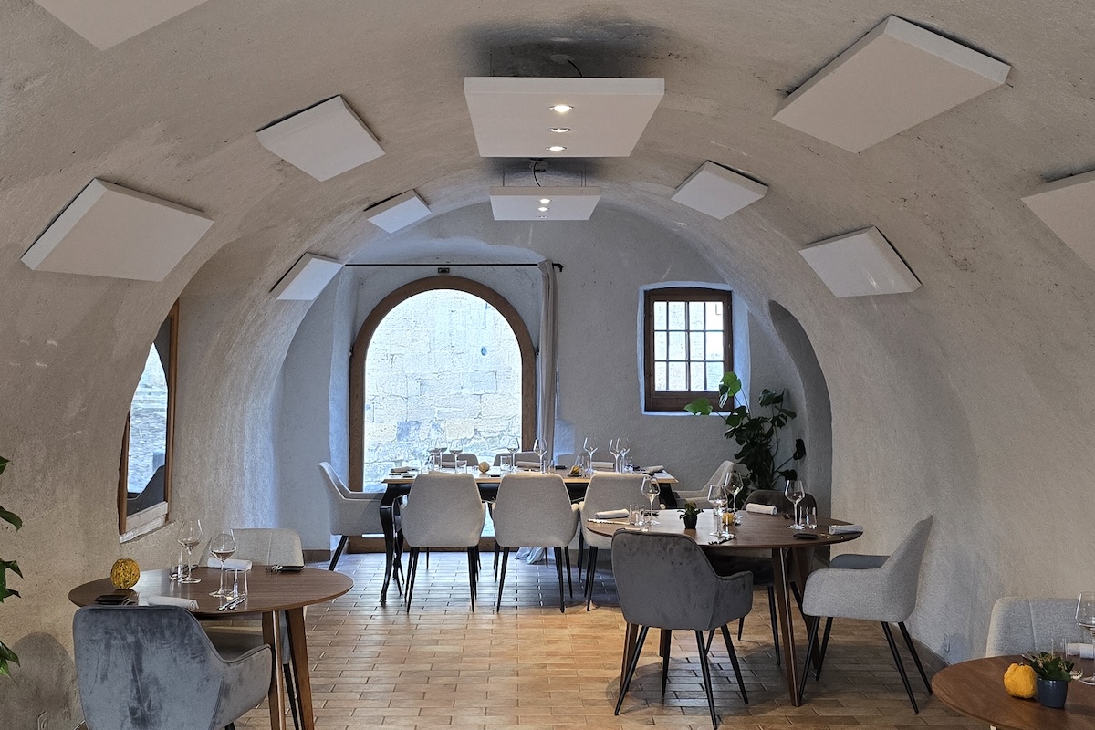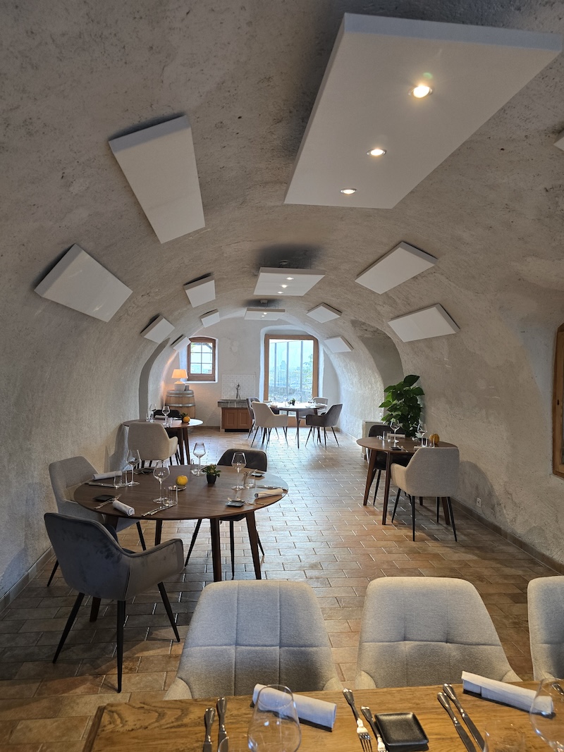 Le restaurant La Pinte du Paradis, haut lieu bistronomique du Château d’Aigle, souffrait d’un problème de résonance important.